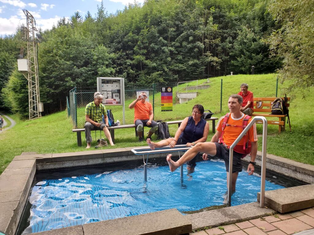 Dort beginnt auch unsere Wanderung. Sie führt uns zunächst recht steil durch den Wald hinauf zur Plassenburg. Nun geht es schattenspendend durch den Buchwald wieder hinab nach Ebersbach. Dort erwartet uns eine kühle Erfrischung an der Ebersbacher Kneippanlage.